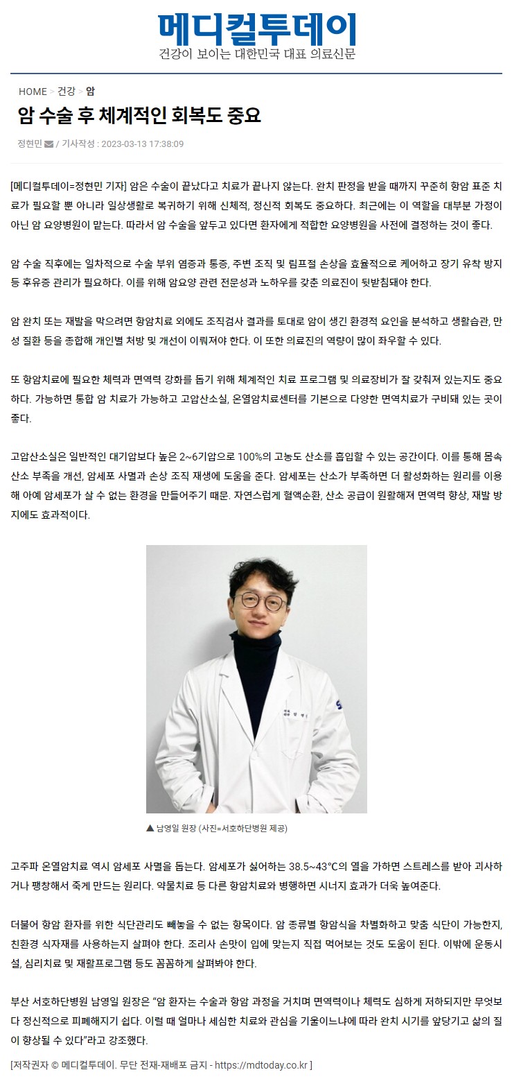 암 수술 후 체계적인 회복도 중요 페이지 정보 작성자 최고관리자 댓글 0건 조회 10,087회 작성일 23-06-07 10:17 목록 본문 기사 원문: https://mdtoday.co.kr/news/view/1065601998574073 관련링크 https://mdtoday.co.kr/news/view/1065601998574073 9590회 연결 이전글암 수술 후 재활치료 왜 중요할까 23.06.07 다음글유방암 수술 후 관리 어떻게?! 23.02.17 댓글 0 댓글목록 등록된 댓글이 없습니다.