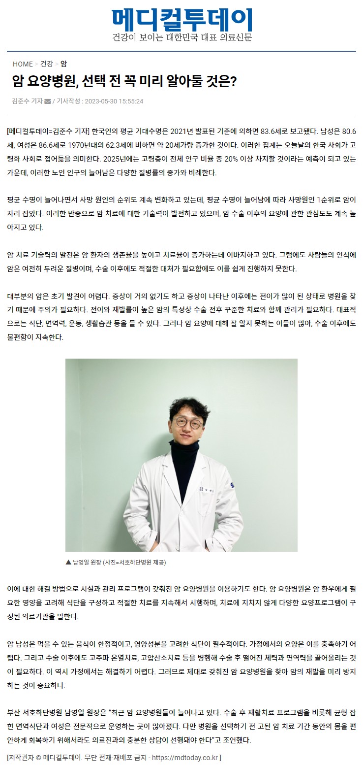 - 이전글고령일수록 암 수술 후 면역력 강화 위해 항암식단 중요 23.06.20