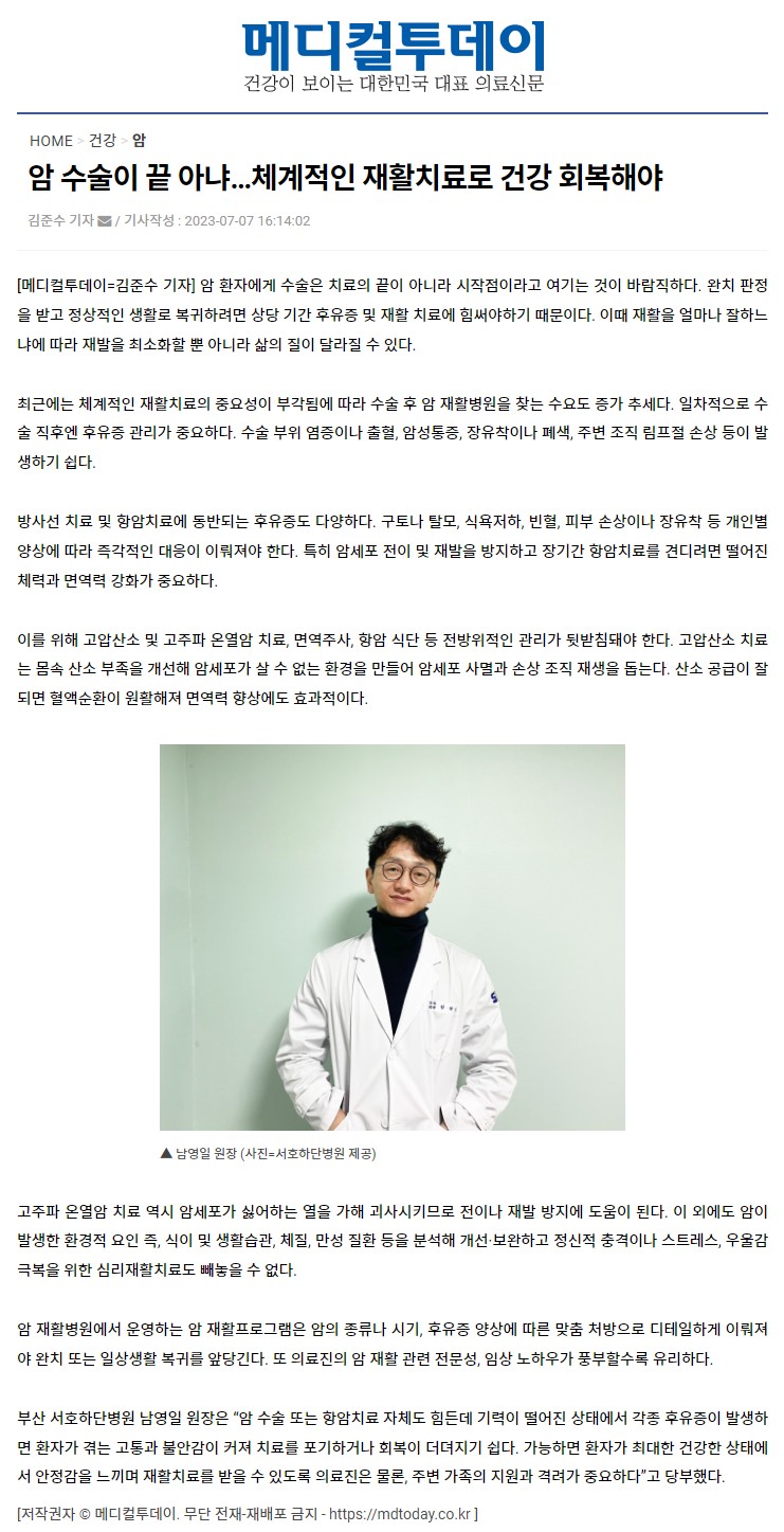 암 수술이 끝 아냐…체계적인 재활치료로 건강 회복해야