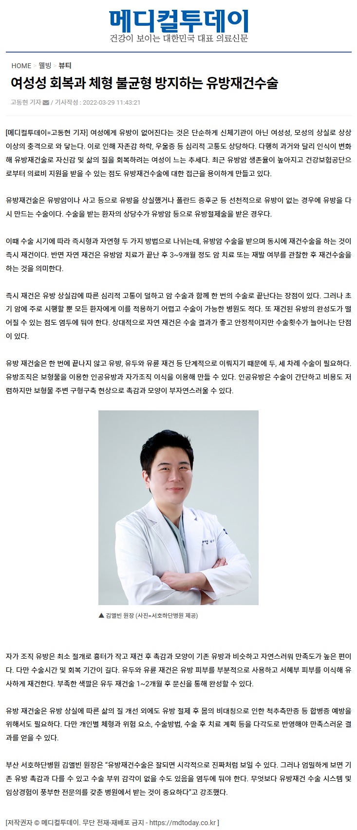 여성성 회복과 체형 불균형 방지하는 유방재건수술