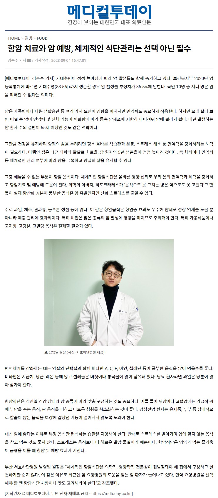 - 이전글항암 치료와 암 예방, 체계적인 식단관리는 선택 아닌 필수 23.10.12