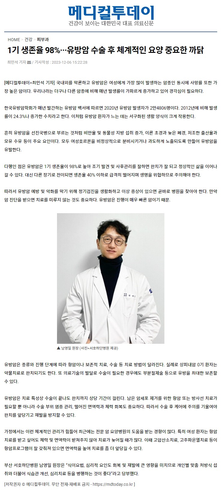 1기 생존율 98%···유방암 수술 후 체계적인 요양 중요한 까닭
