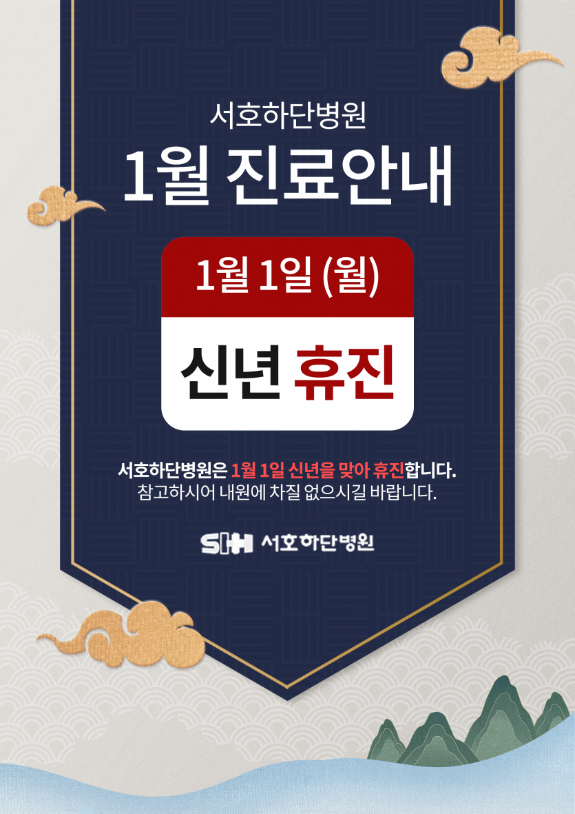 서호하단병원은 2024년 1월 1일 신정을 맞이하여 휴진합니다.