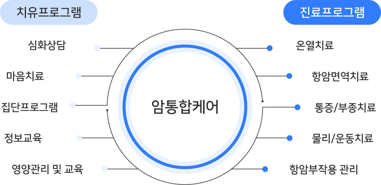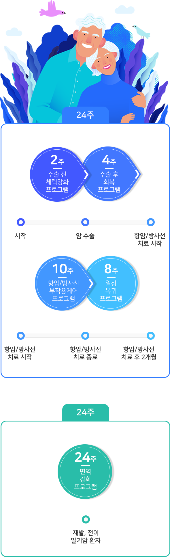 치유와 진료가 결합된 암재활 프로그램으로 협진체계를 통한 ONE-STOP 의료서비스를 제공합니다.